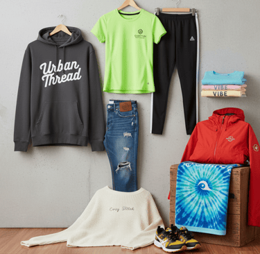 A vibrant collection showcasing our latest promotional apparel, designed to make your brand stand out with style and comfort.